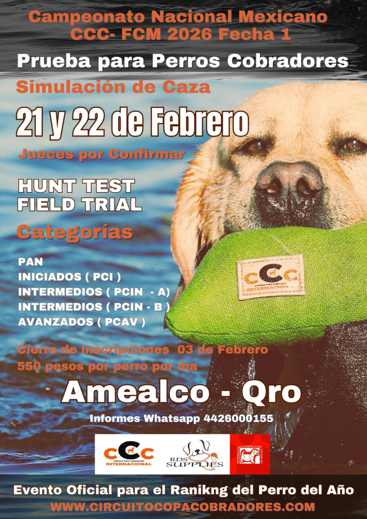 Avalado por la Federación Canófila Mexicana, el CCC impulsa el respeto a las razas de trabajo, fomenta el entrenamiento ético y técnico, y construye una comunidad de manejadores apasionados en todo el país. Aquí, cada punto, cada prueba y cada cobro reflejan el compromiso con el legado del perro retriever